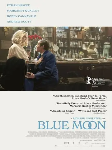 31 maart, 1943. Het is de premièreavond van Oklahoma!, de musical van Richard Rodgers en Oscar Hammerstein. Lorenz Hart, Rodgers’ voormalige partner, ziet met het onmiddellijke succes van de show zijn privé- en professionele leven uit elkaar vallen. Gekweld door alcohol en spijt en omringd door de opwinding en muziek van de avond, heeft Hart nog één kans om de samenwerking met Rodgers nieuw leven in te blazen.Lorenz Hart was een van de meest invloedrijke Amerikaanse songwriters van zijn tijd. Samen met Richard Rodgers schreef hij 28 musicals (waaronder A Connecticut Yankee en Babes in Arms) en meer dan 500 nummers (zoals Blue Moon en My Funny Valentine), die doordrenkt zijn van tijdloze melodieën en emotionele diepgang. Terwijl Rodgers na Oklahoma! met Hammerstein het meest succesvolle duo in de Amerikaanse musicalgeschiedenis vormde, eindigde Harts leven enkele maanden later, op 48-jarige leeftijd. In Blue Moon laat Richard Linklater zien hoe in één nacht de levens van enkele van Amerika’s grootste songwriters voorgoed veranderen, begeleid door de iconische muziek.Blue Moon is geregisseerd door de Oscargenomineerde regisseur Richard Linklater (Boyhood), met een indrukwekkende cast, waaronder Ethan Hawke (Boyhood, De Before-trilogie), Margaret Qualley (The Substance, Once Upon a Time… In Hollywood), Andrew Scott (All of Us Strangers, Fleabag) en Bobby Cannavale (The Irishman). De film ging in wereldpremière op het Filmfestival van Berlijn.