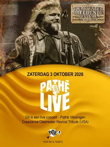PATHÉ LIVE VLISSINGEN: Volgens kenners de beste CCR band (UK) komt weer naar Nederland. Ook Pathé LIVE in Vlissingen (voorheen CCXL Theater) staat op de agenda! Het wordt een stomend optreden met wereldhits als ‘Fortunate Son’, ‘Up Around the Bend’, ‘Have you ever seen the Rain’ en vele andere schitterende songs waarbij spectaculaire drum- en bass solo’s zeker niet zullen ontbreken.Het was John Fogerty’s ruige en zo goed als niet te imiteren stem, alsmede het afleveren van geweldige melodieën waardoor Creedence Clearwater Revival in één keer de prominente Amerikaanse single band werd uit de late 60’s en de vroege 70’s. De door CCR op single uitgebrachte versies van Dale Hawking’s “Suzy Q” en ‘Screaming’ Jay Hawking’s “ I put a Spell on You” waren de eerste grote hits van CCR. Met het uitkomen van het tweede album “Bayou Country” werd CCR plots de populairste rockband in Amerika.Creedence Clearwater Revival bestaat al geruime tijd niet meer, maar CCR All Stars band komt akelig dicht in de buurt van het origineel! De band houdt de southern rock van CCR op authentieke wijze in leven.De CCR All Stars band bestaat uit bandleden met een indrukwekkende staat van dienst in de Britse muziekwereld zoals leadzanger Peter Barton (ex The Animals), Geoff Hammond (ex Denny Laine Band) en Alan Sagar (Slack Alice). Nieuw is niemand minder dan Jim Kirkpatrick (bekend van de Britse legendarische rockband FM). Zij zullen aan de hand van de charismatische Peter Barton alle krakers van Creedence Clearwater Revival ten gehore brengen.