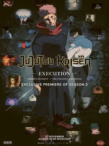 Een sluier daalt plotseling neer over het levendige Shibuya-district tijdens de Halloween-festiviteiten, waardoor massa’s mensen geen kant meer op kunnen. Satoru Gojo, de beste jujutsu sorcerer, komt een eind maken aan de chaos, maar wordt opgewacht door vloekgebruikers en geesten die van plan zijn hem voorgoed op te sluiten.Samen met zijn klasgenoten en enkele andere sterke jujutsu sorcerers schiet Yuji Itadori te hulp in een ongekende strijd der vloeken die bekend komt te staan alshet Shibuya-Incident.In de nasleep hiervan zorgt Noritoshi Kamo, de kwaadaardigste jujutsu sorcerer aller tijden, dat tien koloniën door heel Japan veranderen in vervloekte gebieden. Als de dodelijk Culling Game gaat beginnen, wordt elitemagiër Yuta Okkotsu aangesteld om Yuji te executeren voor de misdaden die hij gepleegd zou hebben.De verschrikkelijke confrontatie tussen de twee geliefde pupillen van Satoru Gojo zal als voorvertoning te zien zijn in de bioscoop. Wees als een van de eersten getuige van de noodlottige strijd tussen Yuji en Yuta in dit langverwachte begin van seizoen 3.Jujutsu Kaisen heeft voor zowel seizoen 1 als 2 Anime of the Year gewonnen, de film Jujutsu Kaisen 0: The Movie heeft ook Best Film gewonnen bij de Crunchyroll Anime Awards. In totaal heeft Jujutsu Kaisen 32 awards gewonnen en 43 nominaties gekregen.
