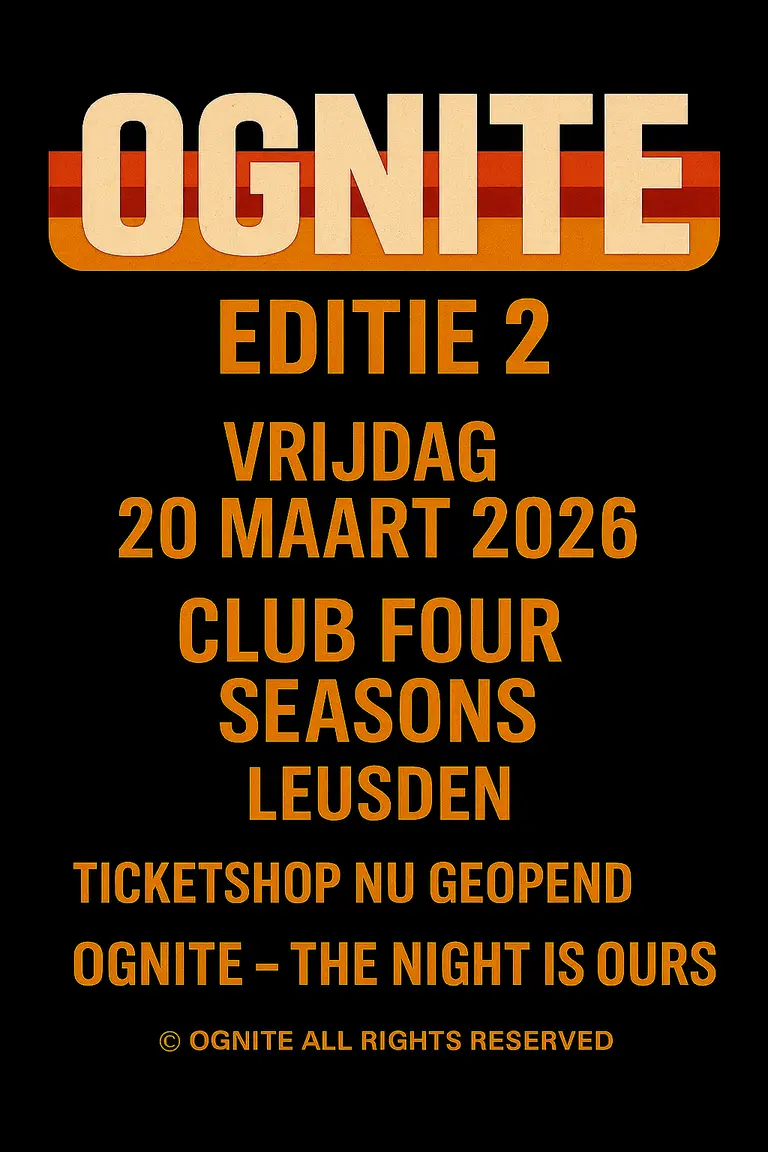 OGNITE Editie Nr. 2 staat gepland op vrijdag 20 maart 2026, en jij bent opnieuw van harte uitgenodigd om samen met ons de nacht te laten stralen.